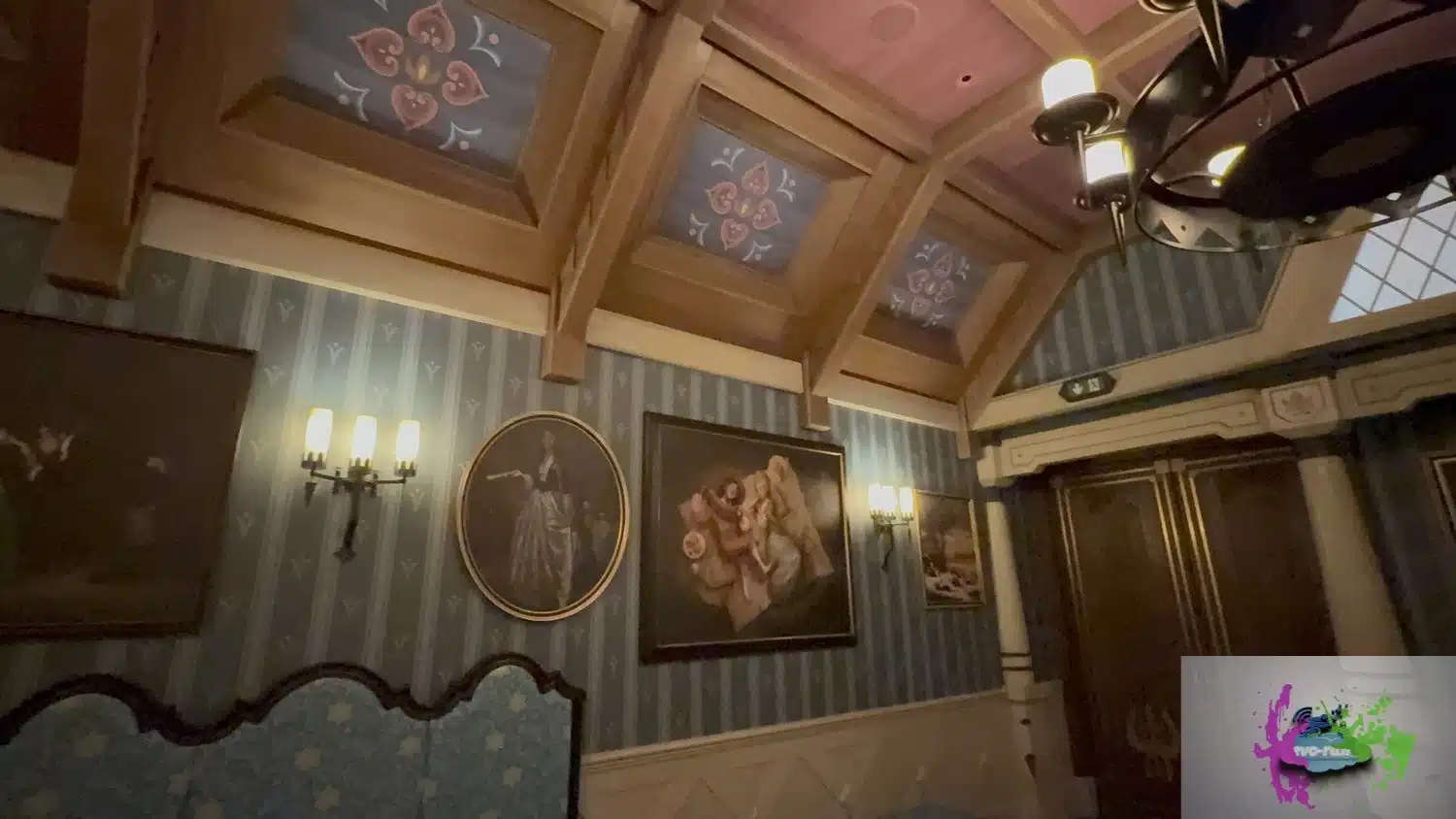 • Les portraits d’Anna et Elsa trônent dans le hall principal.
